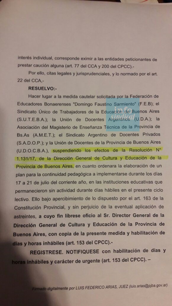 El FUD realizó una presentación en la Justicia Pcial. para garantizar y resguardar derechos de los docentes. La misma se realizó ante la ilegítima y compulsiva convocatoria de la DGCyE a trabajar durante el receso invernal.